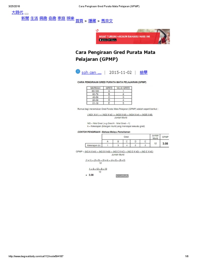 Cara Pengiraan Gred Purata Mata Pelajaran Gpmp Pdf